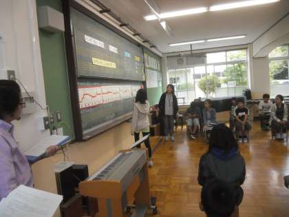10月13日(火)5時間目6年1組は,音楽の授業でした。京都市全域から,20名近くの先生方が見に来られての研究授業でした。鑑賞の学習で,ブラームスの「ハンガリー舞曲 第5番」を聴いて学習しました。