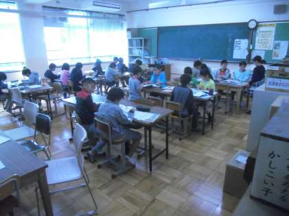 10月15日(木)1時間目4年1組は,国語の学習をしました。「手と心で読む」という単元で,点字の学習をしています。今日は,図書室で,調べ学習をしました。