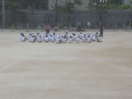 10月15日(木)3時間目,6年生は,合同体育で,持久走の学習をしました。みんな1000mを走って,タイムを計りました。もうすぐ,大文字駅伝予選会の選手を決める校内予選会も開かれます。