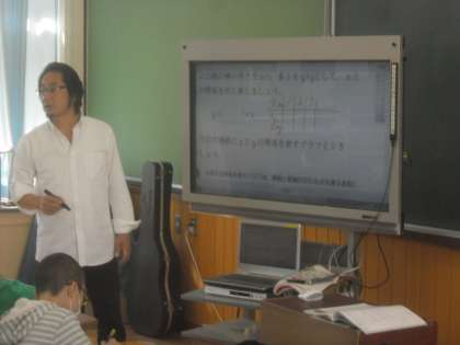 10月27日〈火)3時間目,6年2組は,算数の学習をしました。「比例のグラフ」の学習をしました。電子黒板機能付きデジタルテレビは,教科書などを大きく写せて,字を書き込めるので,とても便利です。いろいろな機器を駆使して,子どもたちにわかりやすい授業を心懸けています。