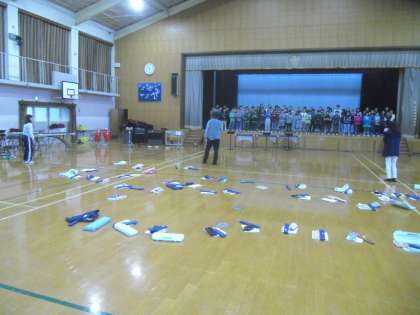 11月2日(月)3時間目,5年生とさくらんぼ学級合同で,学習発表会の練習をしました。歌や合奏の練習をしました。