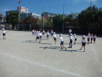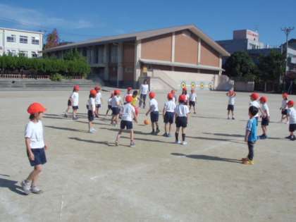 1組2組ともに運動場で「ころがしドッチボール」をしました。