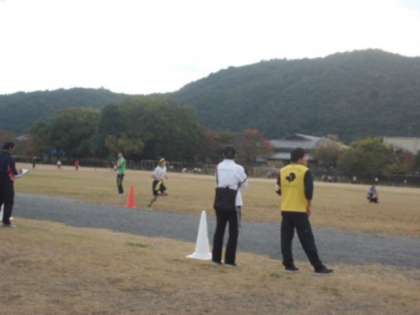 嵐山東公園で大文字駅伝支部予選会が行われました。御室小学校からは,6年生2チームが出場し,力一杯走り抜きました。結果は,9位と15位でした。応援ありがとうございました。