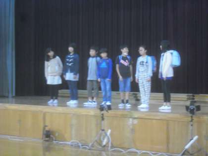オムロ ワールドの計画委員会からの発表は,「あいさつ」についてです。寸劇を交えて,自分たちから,積極に元気よく挨拶しようと呼びかけてくれました。