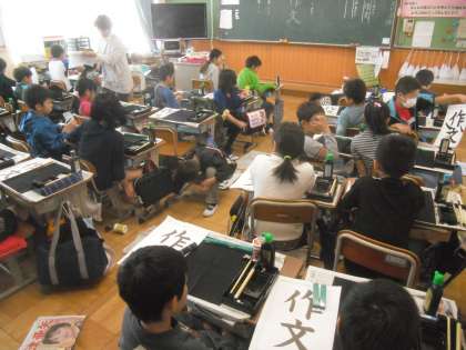 11月10日(火)5時間目,4年2組は,習字の学習をしました。「作文」という漢字を書きました。