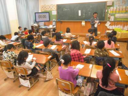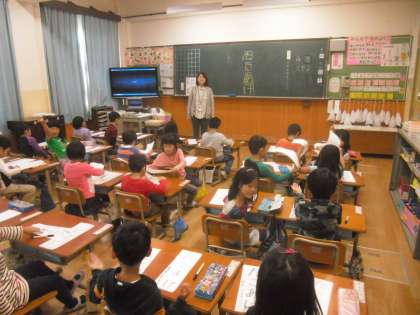 1年生は,書き初めの練習で,「たこあげ」を書きました。字の形や大きさに注意して書きました。