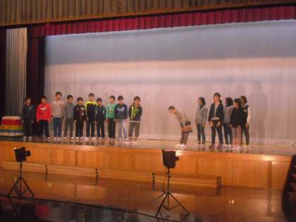 学習発表会の最後のリハーサルは,6年生でした。劇「心を一つにして」でした。