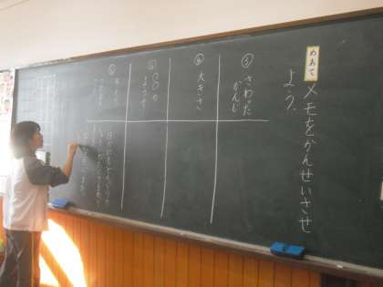 11月16日(月)1時間目,1年1組では,国語の学習をしました。作文の学習をしました。作文を書く前に,メモを書きます。そのメモを完成させる学習です。