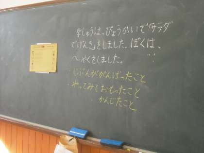 11月16日(月)1年2組では,「学習発表会」で頑張ったことを黄色い画用紙に書きました。
