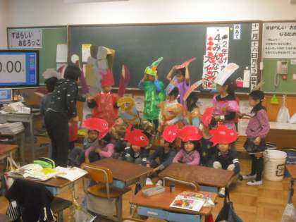11月16日(月)2年1組では,学習発表会の衣装を着て,みんなで記念撮影をしました。