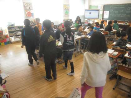11月20日(金)5年1組の算数は,「概則」の学習をしました。教室の縦の長さや横の長さを歩数で調べて,どれぐらいか予想しました。