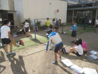 11月20日(金)3年1組の理科は,鏡を使って,太陽の光を集める学習をしました。3枚4枚と鏡を使って,光を集めていくと,温度が高くなります。