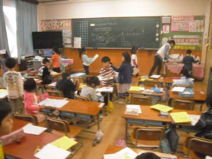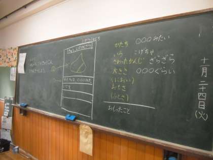 11月24日(火)1年は,生活科で,チューリップの球根の観察をしました。出来たら,友達で見せ合ったり,出しに行ったりします。