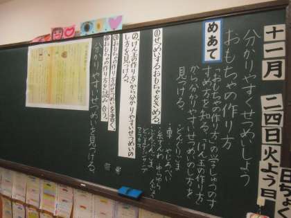 11月24日(火)2年2組は,国語で,「おもちゃの作り方」という学習をしました。おもちゃの作り方の説明文を書く学習です。