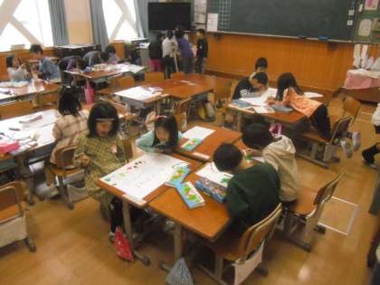 11月26日(木)1年1組は,生活科の学習で,聾学校との交流学習の準備をしました。御室小学校の校区(仁和寺の北側)に,府立聾学校があります。校区にある学校ということで,昔から,交流学習を続けています。昨年度は,小学部の児童がおられなかったので,ありませんでしたが,今年度また,小学部に入学されたということで,交流学習をしています。