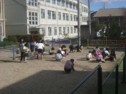 11月27日(金)3年1組の理科の学習の様子です。虫眼鏡を使って,太陽の光を集めて,段ボール紙を焦がします。