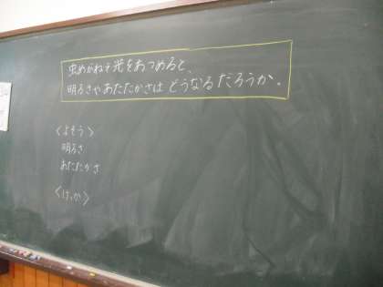 「もっとたくさん,光を集めると,火が付いて,燃えるよ。」というと