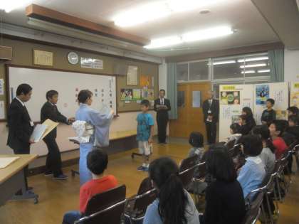 平成27年度 双ケ丘中学校区人権標語・ポスター・作文コンクール表彰式が,双ケ丘中学校で,行われました。御室小学校からも,最優秀賞3名優秀賞9名,合計12名が表彰されました。