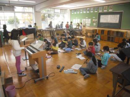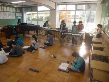12月7日(月)5年1組の音楽は,合奏です。「威風堂々」の合奏で,今まで,パート練習してきたものを合わせました。
