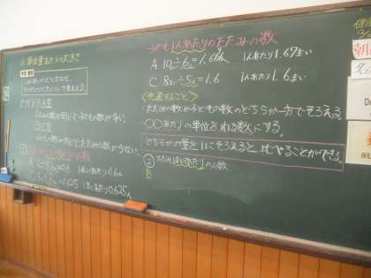 12月7日(月)5年2組の算数は,「単位量あたり」の学習で,こみぐあいの比べ方を学習しました。