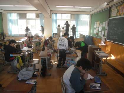 12月8日(火)6年2組の図工は,「版画」の学習をしました。一度描いた下絵を裏返して写し直すことで,左右が逆の下絵になります。これをしておかないと,出来上がった作品が,左右逆になります。