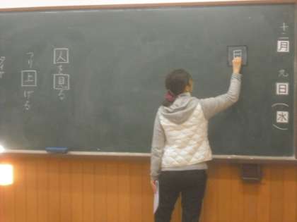 12月9日(水)1年1組の国語で,新出漢字の学習をしました。今日は,「目」の学習をしました。みんなで指さして,書き順をしっかりと覚えました。