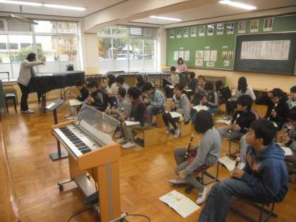 12月10日(木)6年の音楽では,リコーダーの学習をしました。「越天楽今様(えてんらくいまよう)」という曲で,雅楽の旋律に親しむ教材です。