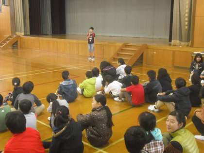 12月14日(月)1時間目に,オムロワールドがありました。各委員会から,工夫した出し物やお知らせがありました。