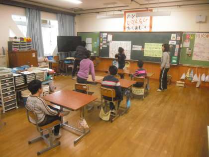 12月18日(金)さくらんぼ学級の朝の会,歌が終わりました。