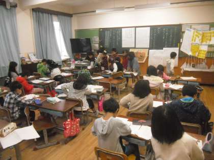 12月18日(金)3年2組の国語は,作文「たから島のぼうけん」です。大分書けてきて,先生に見てもらっています。