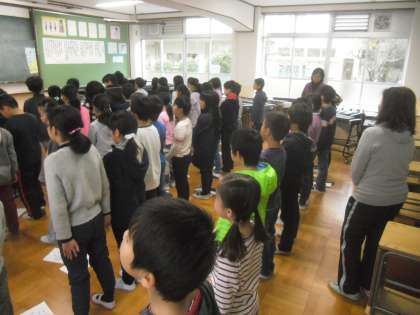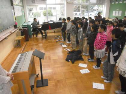 12月18日(金)4年・さくらんぼ学級は,音楽で,オムロソング「いのちの歌」を歌いました。