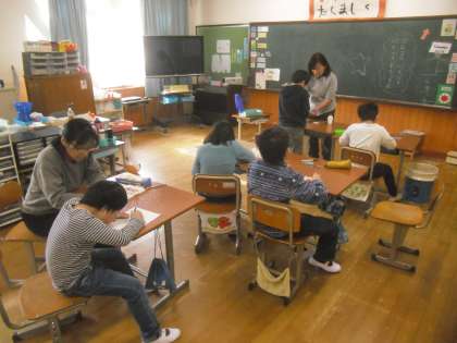 1月12日(火)さくらんぼ学級では,巨匠展の作品作りをしました。星形の紙に,いろいろな絵を描きました。