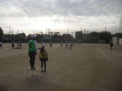 1月13日(水)4年1組の体育は,ポートボールです。パスを工夫して,ゴールを狙います。