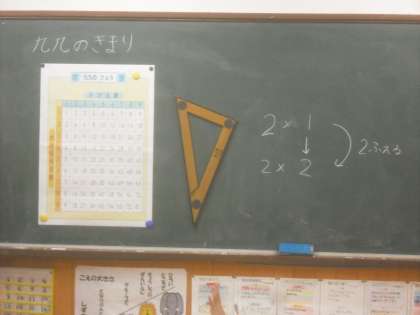 1月13日(水)2年1組の算数は,「九九のきまり」の学習をしました。「3の段では,かける数が1ふえると,答えは3だけふえます。」という言い方の学習をしました。