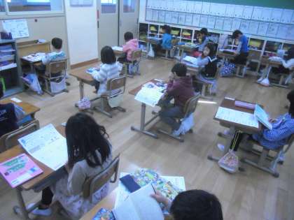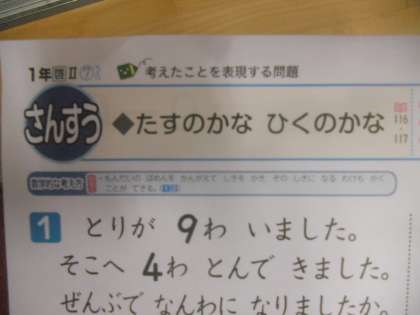 1月15日(金)1年1組の算数は,「たすのかな ひくのかな」のテストをしました。1年生でも,テストをして,振り返りをして,わからなかったところを復習します。