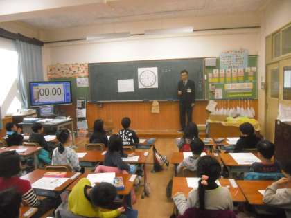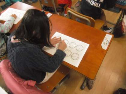 1月18日(月)1年2組のぐんぐんタイムは,学校長が,時計の学習をしました。今日は,10分ごとの短針の読み方を学習しました。