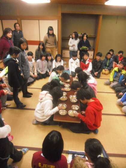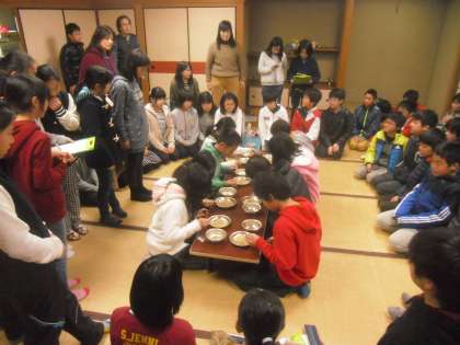 1月18日豆つまみ大会(5・6年)がありました。割り箸を使って,大豆をつまんで,他の食器に移します。前が滑って,なかなか難しいです。お箸を正しい持ち方で正しく使うことがこつです。