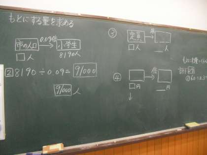 1月21日(木)5年1組の算数は,「割合」の学習をしました。「もとにする量」「比べる量」「割合」を考えます。