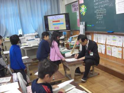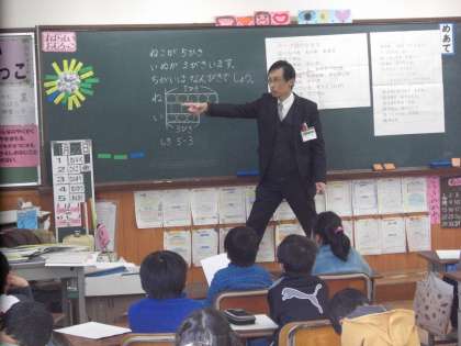 1月22日(金)2年の帯タイムの学習で,学校長がテープ図の学習をしました。テープ図を見て,たし算やひき算の式を考える問題です。大人にとっては,何気ないことでも,2年生の子どもたちにとっては,難しいこともあります。最初わかりにくかった問題も,ほとんどの子が,しっかり出来るようになりました。