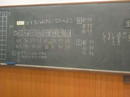 1月25日1年1組の算数は,数を並べる学習をしました。100までの数の大小をしっかりと捉えることは,とても大切です。