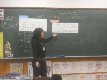 1月28日(木)2年1組の算数は,「ちがいをみて」の学習をしました。昨日,校長が2年2組で,行った授業を真似して,若手の先生が授業をしました。とても良い授業で,子どもたちも,しっかりと学習に取り組めていました。