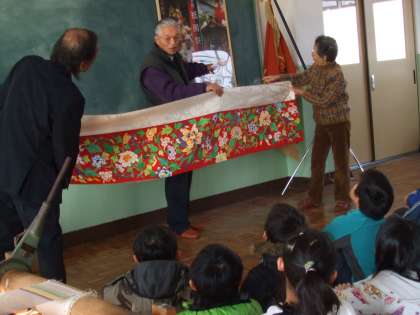 地域の伝統産業「御室つづれ織」を4年生が体験しました。
