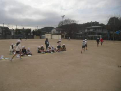 2月12日(金)3年1組の体育は,持久走をしました。ペース走で,4分間走りました。同じ速さで,最後まで,走ることを目指します。