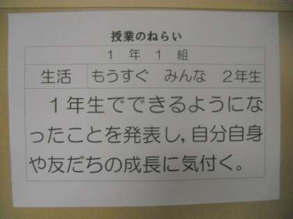 2月23日(火)1年1組の生活は,「もうすぐ,みんな 2ねんせい」でした。