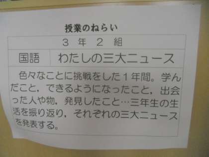 2月23日(火)参観日の3年2組は,「私の3大ニュース」を発表しました。