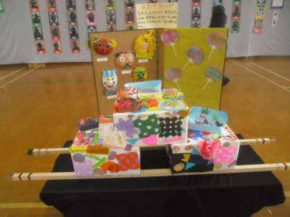 作品展,さくらんぼ学級の展示と聾学校の交流作品です。