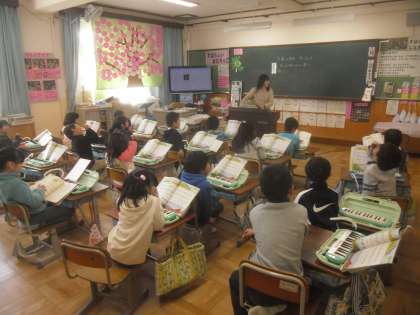 3月1日2年2組の音楽は,「汽車は走る」と「ウンパッパ」を歌いました。