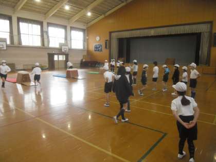 「跳び箱」の学習を4年2組とさくらんぼ学級の4年生4人といっしょに,学習しました。