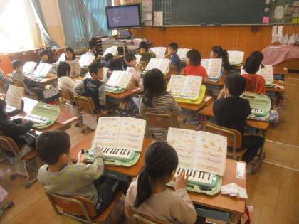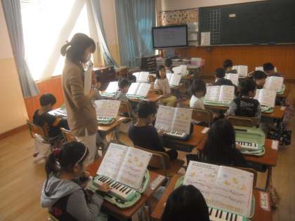 3月4日(金)1年1組の音楽は,鍵盤ハーモニカのテストをしました。