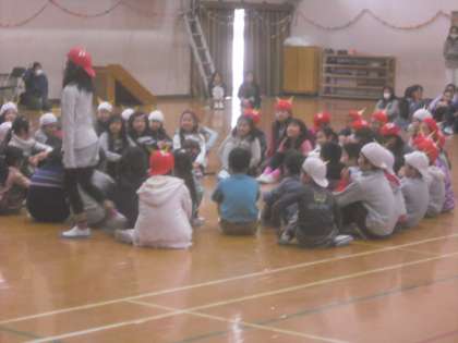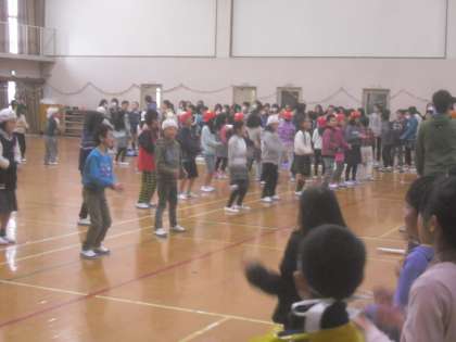 学芸会で披露したおにぎり作りのダンスを全校で踊りました。